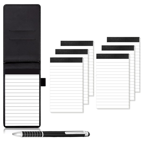 - You will receive:You will receive a notebook holder set that includes black leather notepad holder with 7 notepads (30 Lined Sheets) and metal pen.They meet your daily note-taking needs.