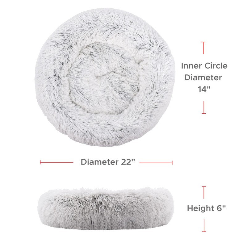- 🐾 PERFECT FOR SMALL DOGS AND CATS: Comfortable, fluffy and luxurious pet bed to give your best dog or cat friend the ultimate zzz’s. Round donut shape helps soothe anxiety and provide a cozy, calming space for your pet to relax. 22” x 22” for pets up to 25lbs.