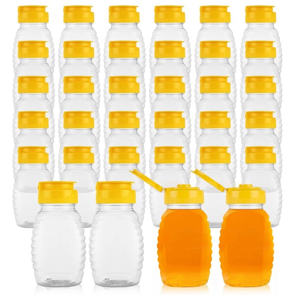 FVIEXE 30PCS 8oz Plastic Honey Bottles, Bulk Honey Jars Honey Dispenser Containers with Yellow Flip Top Lid Squeeze Bottles for Honey Storing and Dispensing