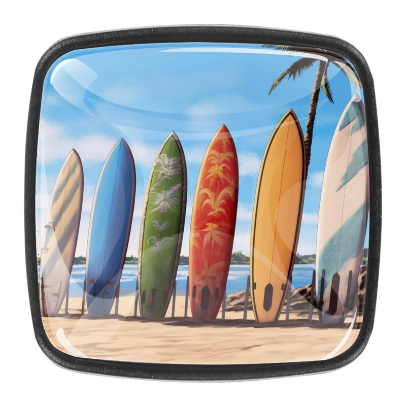 FVQL Pack of 4 Cabinet Hardware Knobs with Screws, Drawer Pulls Dresser Handles, Beach Surfboard