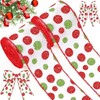 Fvviia 2 Rolls Christmas Glitter Dot Wired Edge Ribbons Green Red Dot Ribbons Polka Dot Printed Wired Edge Ribbons Burlap Decorative Ribbons for DIY Craft Bows