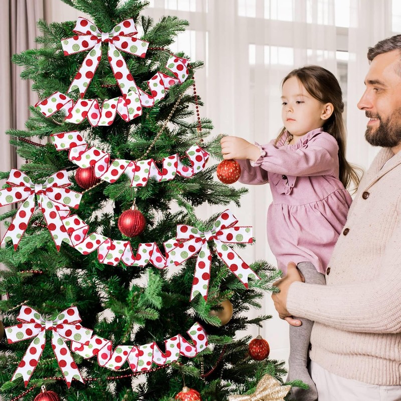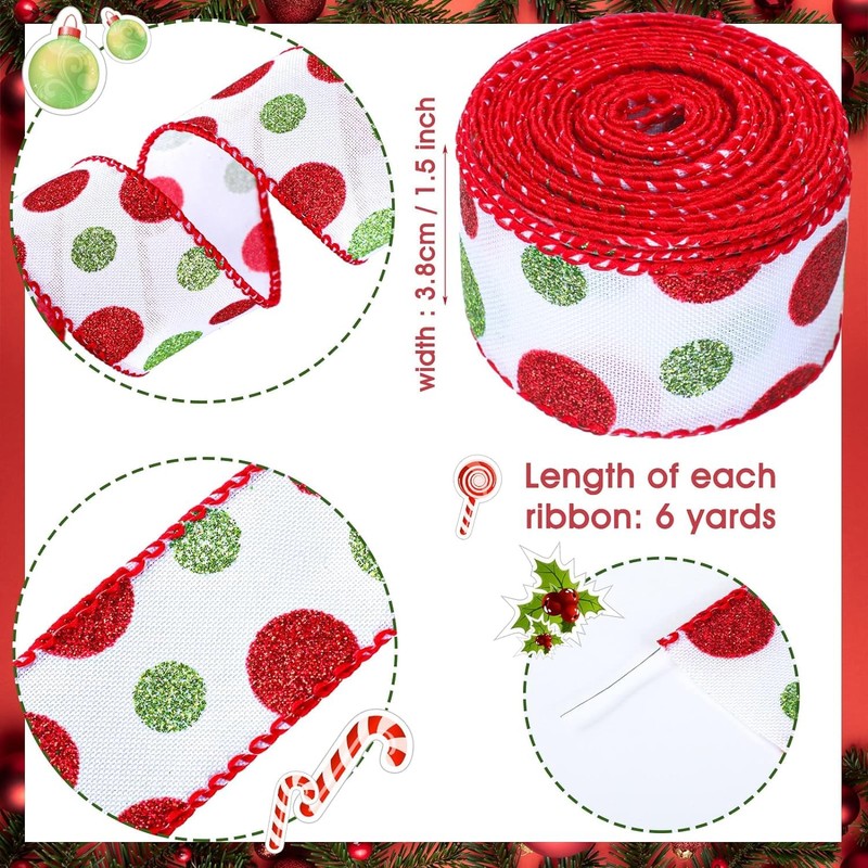 - Glitter polka dot design: this polka dot printed wired edge ribbon features glitter polka dots patterns, with a colored background, designed various green and red polka dots, lovely and attractive in color, which catches people's attention easily and makes your home more charming