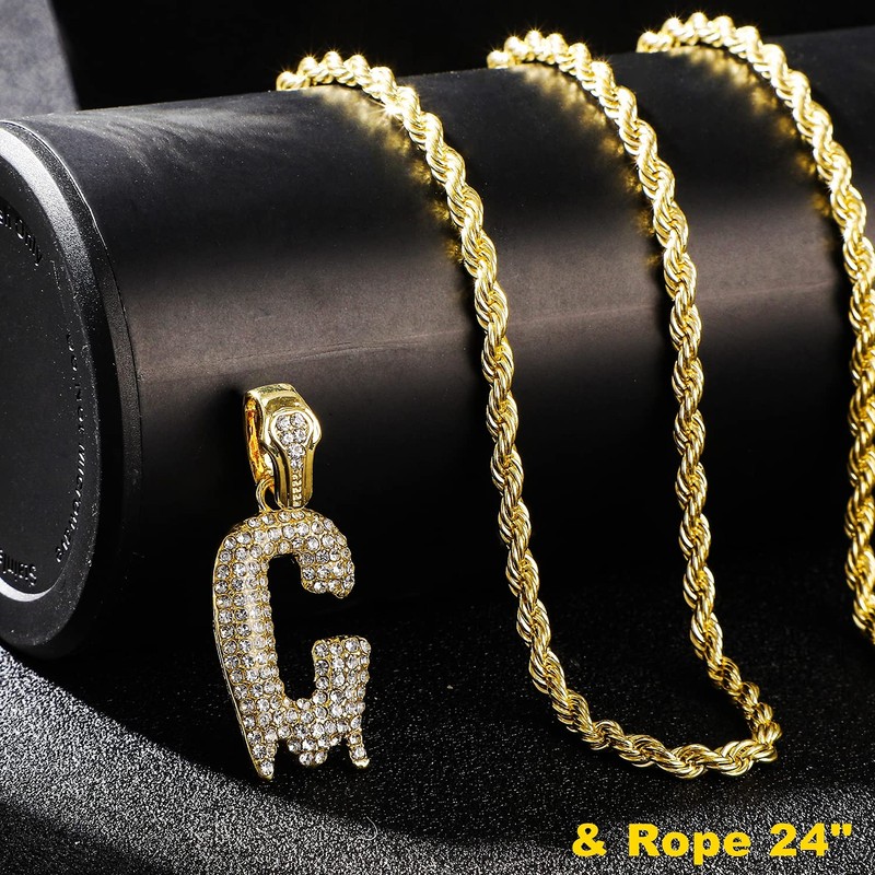 - Style/ Design:chic iced out diamond dripping initial letter necklaces design,which made with incredible details and craftsmanship; initial letters from A to Z, letter pendants with rope and tennis chains for choice. 4mm rope chains 24",3mm diamond tennis chains 22"