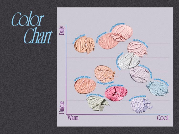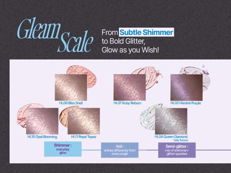 The 12 unique shades give different levels of radiance, while providing instant vivid glow including subtle moisturizing glow and fancy glow that will make you photogenic. This product satisfied fwee supporters who are all cosmetics lovers by providing 12 different glowing effects for both daily and holiday moods. Choose from fancy shades of your desire and differently sized glitters to have customized glow.