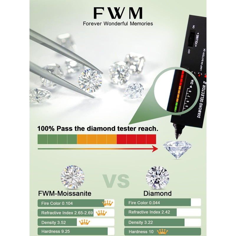 Premium Bezel Setting: Each moissanite stone is securely held in a classic bezel setting, showcasing the brilliance of the stone while providing protection and durability.