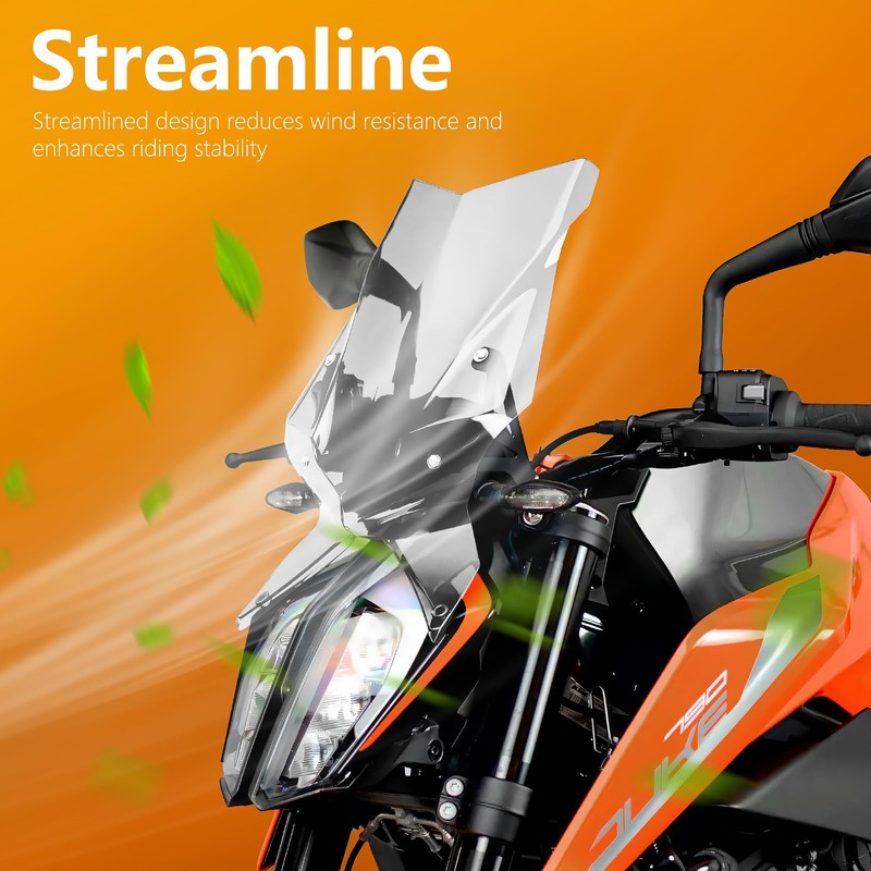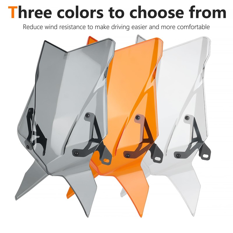 - Design: At the stage of Duck 790 890 wind deflector guard designing, it was tested in a virtual wind tunnel to enhance aerodynamics and wind protection; There are 3 colors to choose from gray/transparent/orange; add your motorcycle an exclusive look