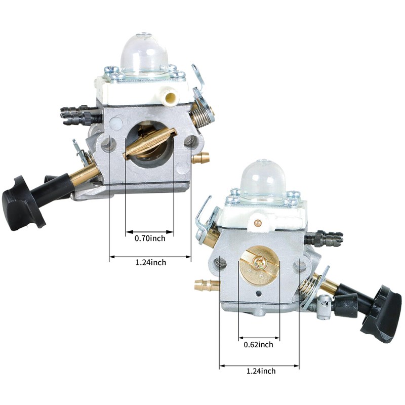 - Package list: 1 carburetor, 2 gaskets, 1 fuel filter, 1 spark plug, 2 primer bulb, 1 fuel line