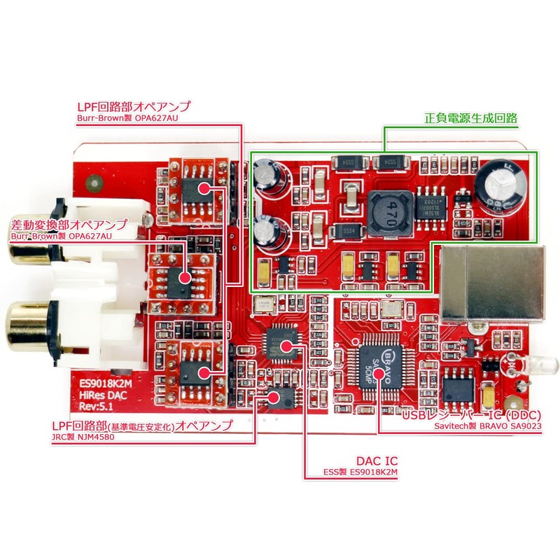 This product uses VIA VT1728A for digital audio control ICs, and uses ESS Technology ES9018K2M for the DAC IC and a small D/A converter that is powered by USB connection bus power with a high resolution audio source (24-bit/96 kHz).