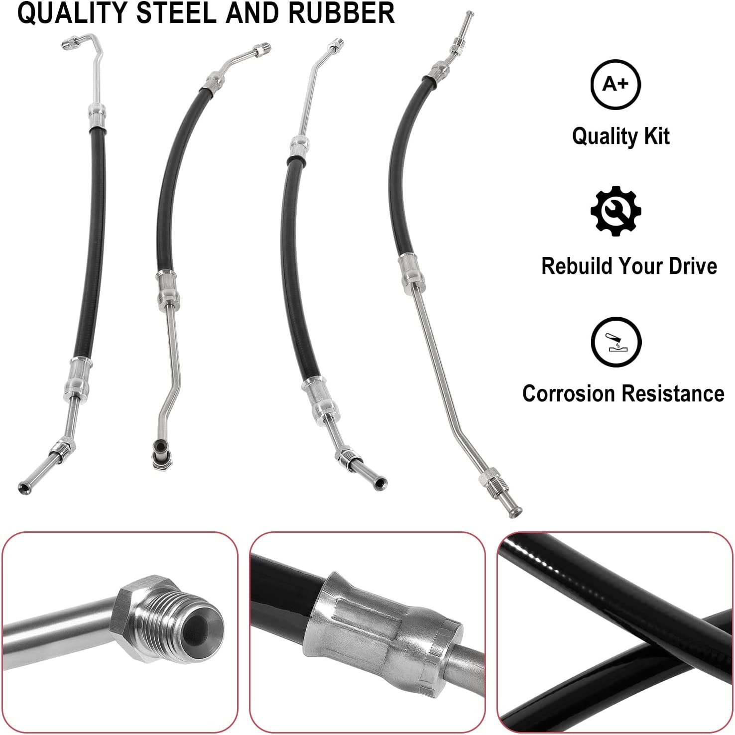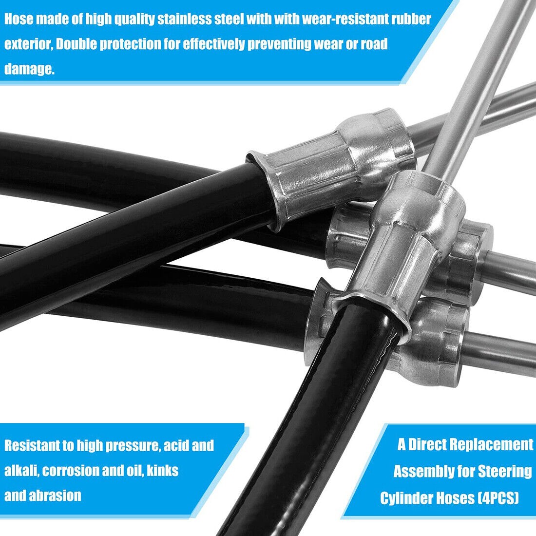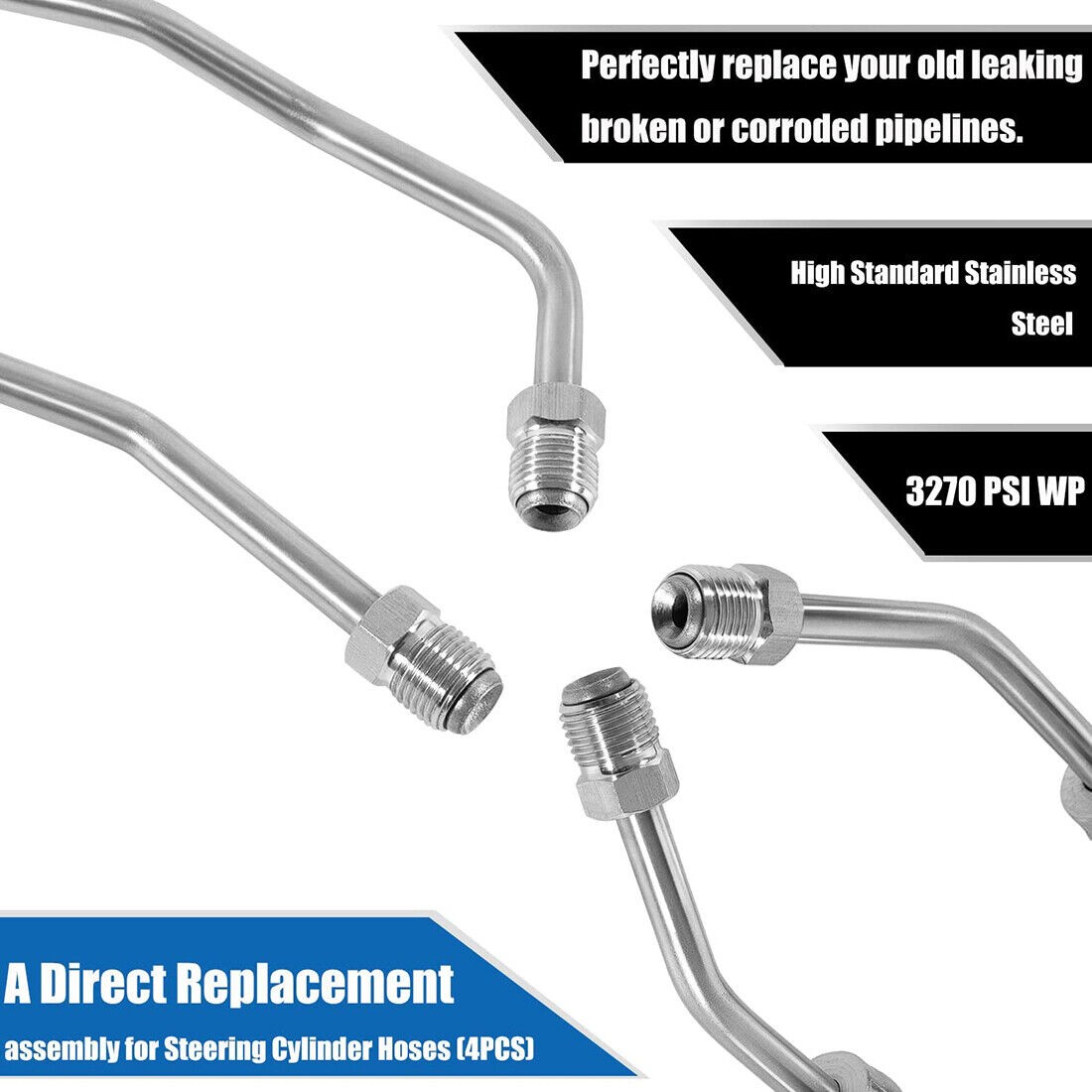 • MATERIAL: The steering cylinder hose kit is made of quality steel and rubber. Treated with professional technology, anti-corrosion, and high-temperature resistance, sturdy and durable.