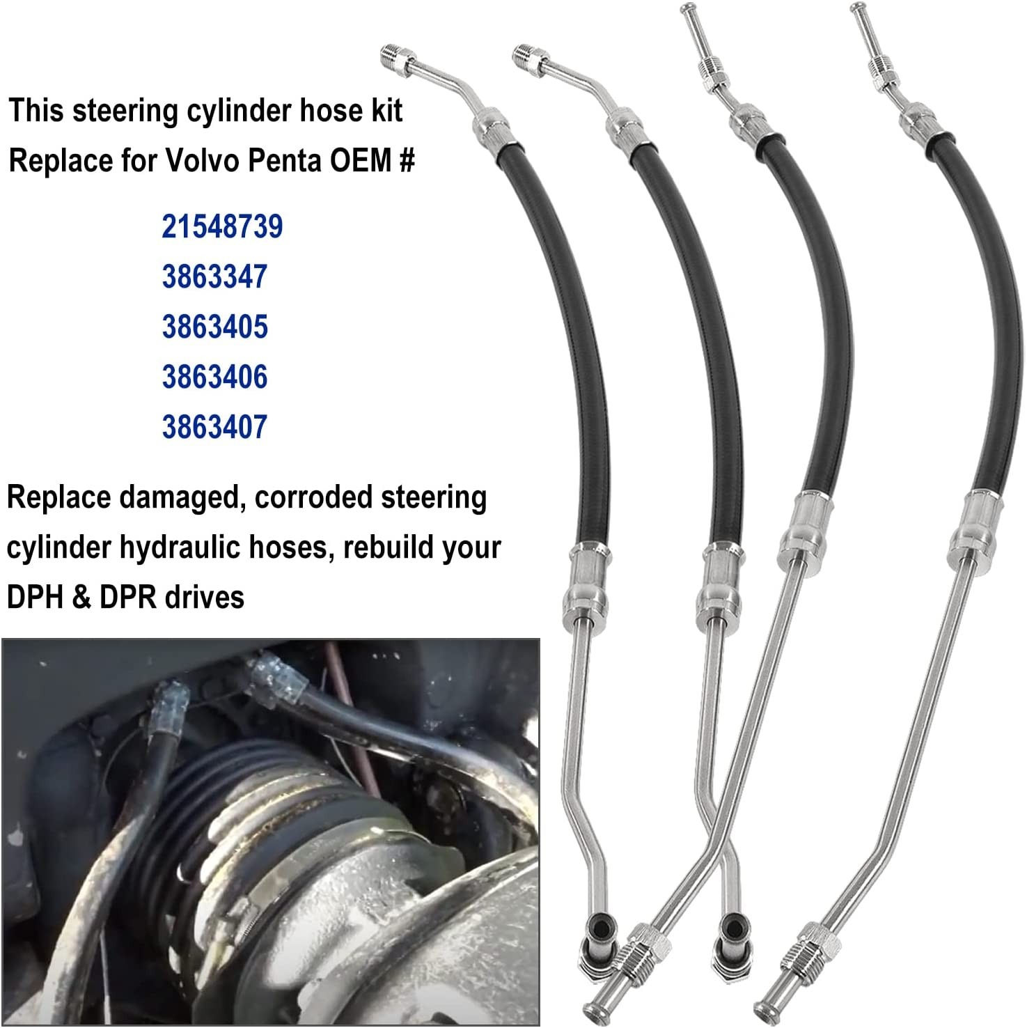Trim & Tilt Steering Cylinder Hydraulic Hose Line Kit Fit For Volvo Penta DPH & DPR Drives, DPH-A DPH-B DPH-C DPR-A DPR-B DPR-C, Replace For Volvo Part # 3863347, 3863405, 3863406, 3863407, 21548739