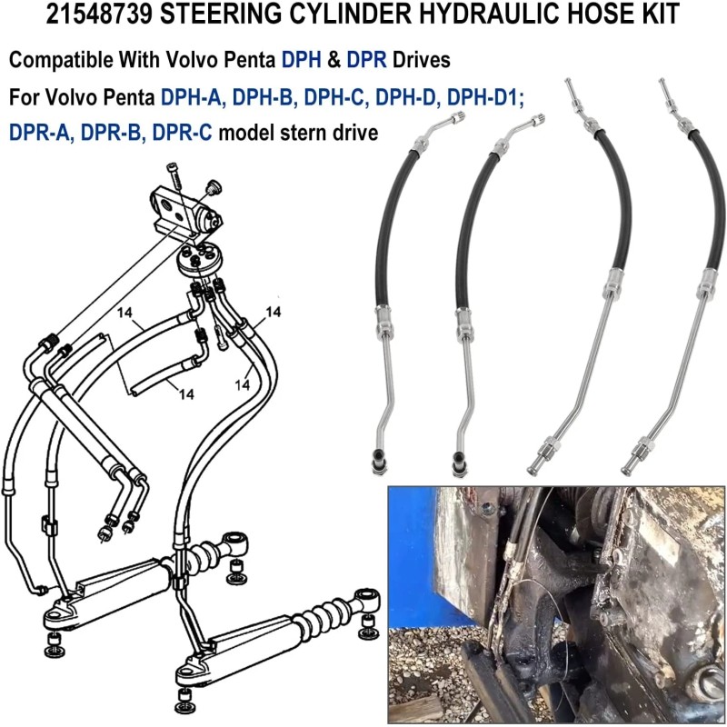 • APPLICATION: The 21548739 steering hose kit is compatible with Volvo Penta DPH & DPR Drives. For Volvo Penta DPH-A, DPH-B, DPH-C, DPH-D, DPH-D1, DPR-A, DPR-B, DPR-C model stern drive.