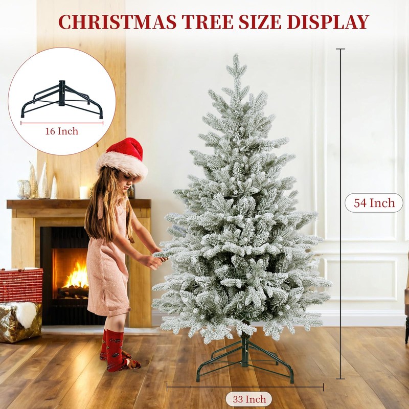 - 【Duability】The flocked pre-lit Christmas tree 4.5ft is made of high-quality materials with a stable structure and strong durability, which can withstand multiple Christmas seasons