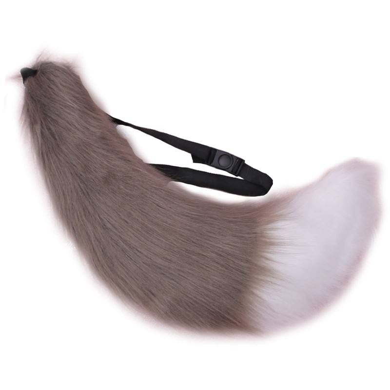 Fxaelian Womens Mens Fox Big Tail Anime Comic Cat Dog Wolf Tail Set Cute Lolita Holloween Animal Cosplay Tail Party Costume Accessory for Adult Kids Women Men Teen Girls Boys Grey White