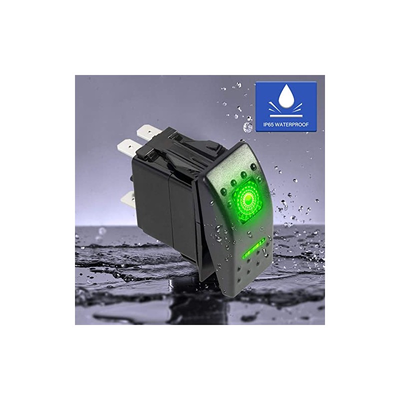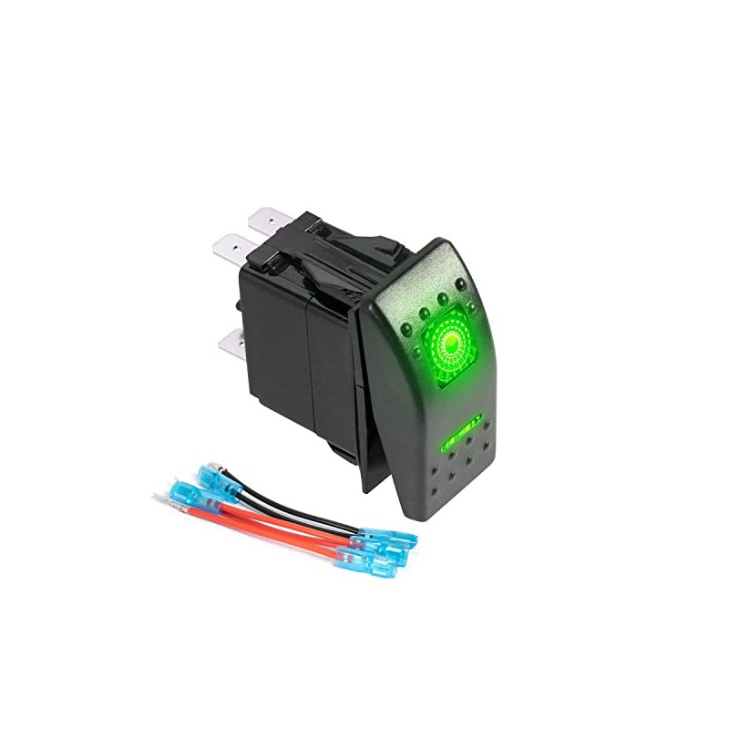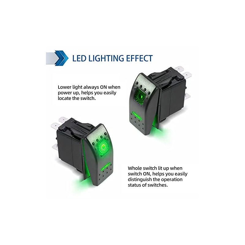 FXC FXC Rocker Switch 5Pin Laser On/Off Green LED Light 20A/12V 10A/24V Toggle Switch with Jumper Wires Set for Automotive Boat Marine Truck Jeep Off-Road Bus RV