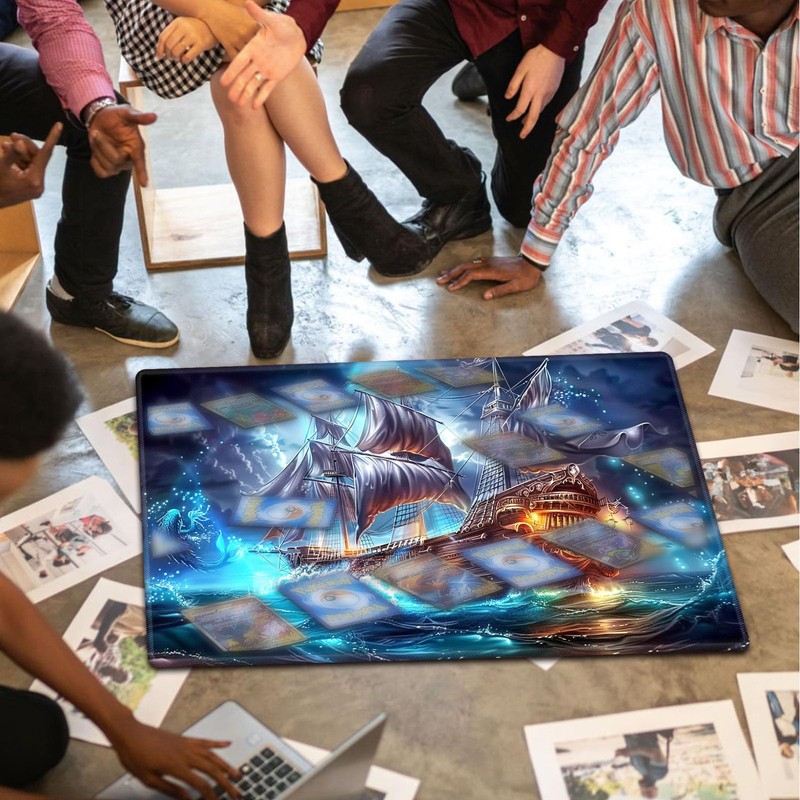 FXIANGWL Card Game playmats for MTG & TCG and Other Games Premium Stitched.Suitable for Any Player Ancient Sailing Ship in Rough Seas