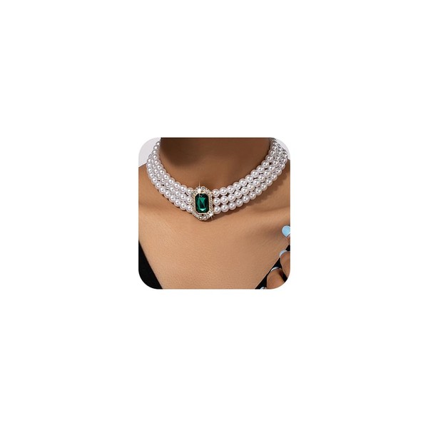 fxmimior - Collar bohemio de revestimiento múltiple para mujer de los años 20, diamantes de imitación verdes, perlas gruesas y delicadas, collares en capas, abalorio hechas a mano, con colgante