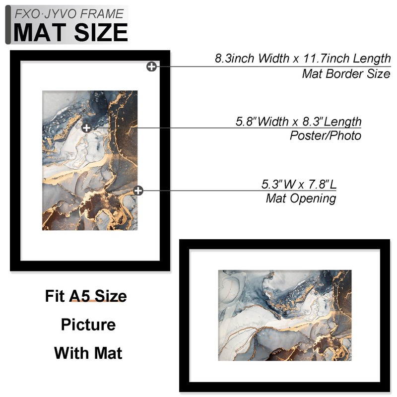- ❷ PICTURE FRAME SIZE✔ ➤8.3x11.7 frame perfects for photo size 5.8x8.3 with mat or 8.3x11.7 without mat.