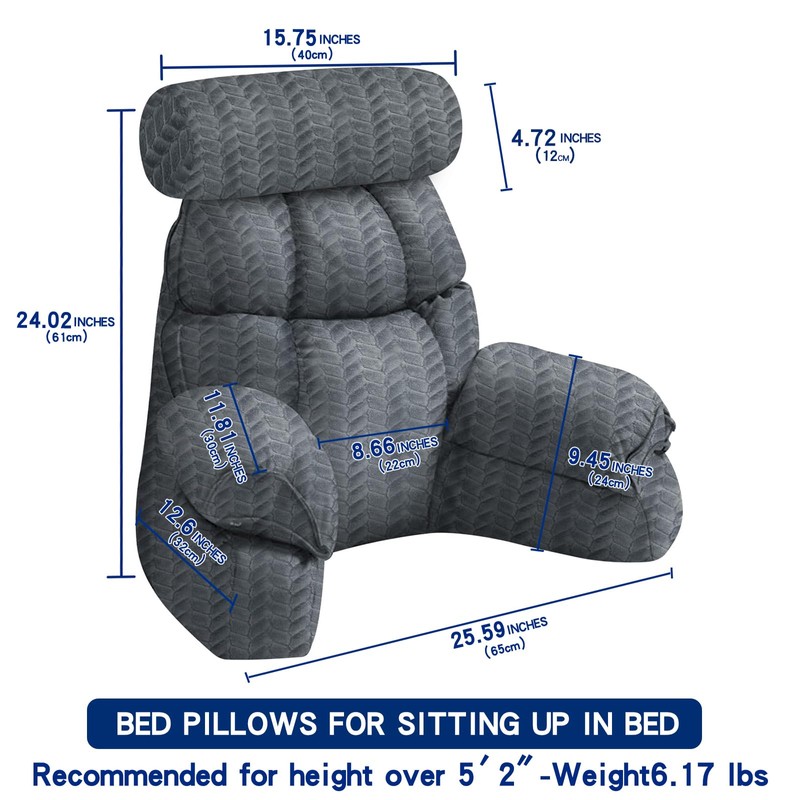 - Luxurious Reading Pillow: This large pillow measures 64 cm in height and 70 cm in width, providing firm and ample back support. Each armrest is 24 cm high, offering support for your shoulders, neck, and arms, which may help reduce joint and muscle strain and enhance comfort. A small size option is also available, measuring 61 cm in height, 65 cm in width, with 24 cm high armrests. If you have a smaller build, the small size is recommended.
