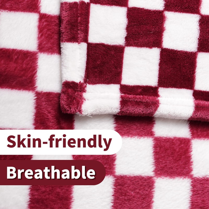 FY FIBER HOUSE Checkered Flannel Fleece Throw Blanket Soft Cozy Checkerboard Grid Print Chessboard Gingham Pattern Blankets for Bed Couch Sofa, 50"x60", Burgundy