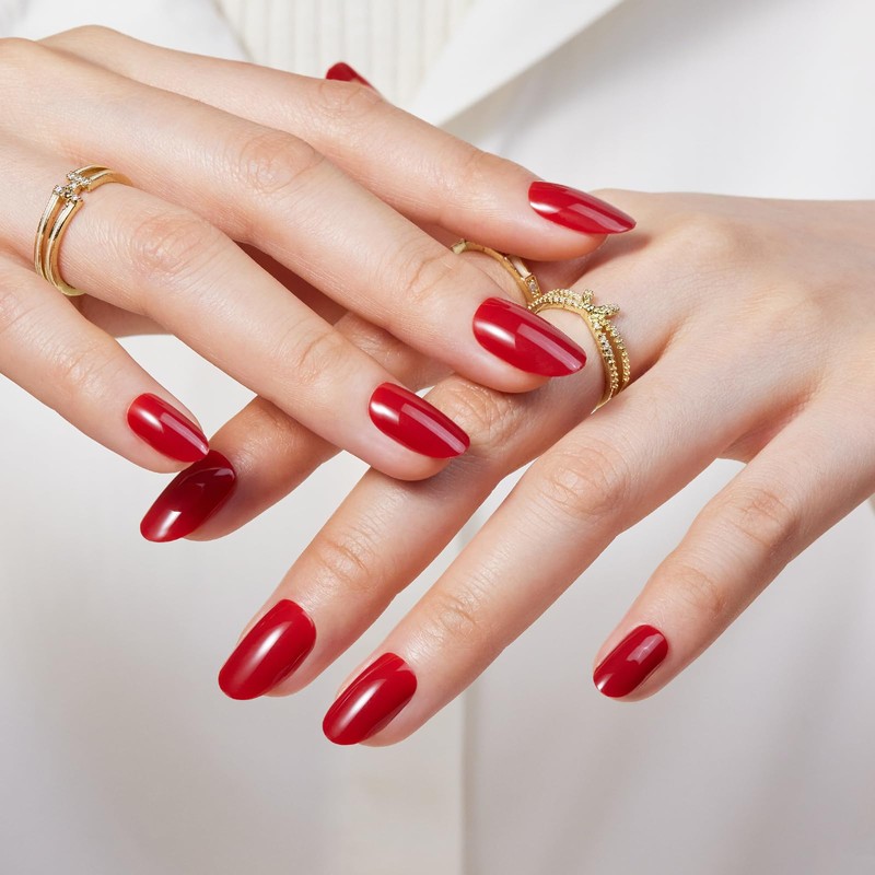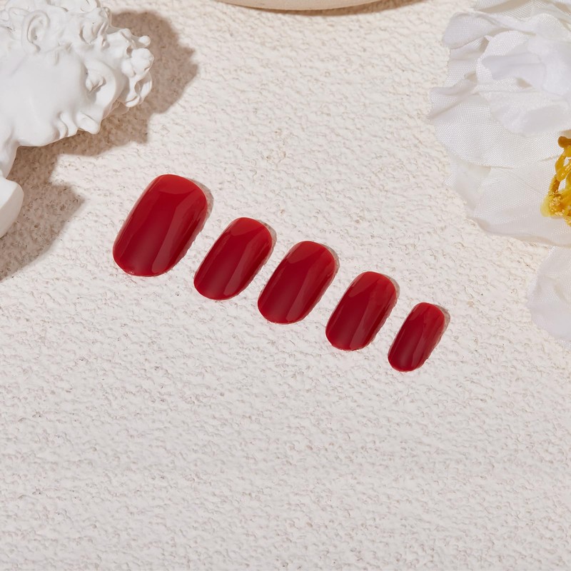 FYB Press On Nails, Short Almond Nails, Fake Nails Kit, With Glue (12-Red, 24 Pcs)
