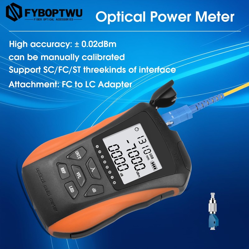fyboptwu - 4 in 1 Function Rechargeable Fiber Optic Tester Portable Optical Power Meter (FC/SC/ST) & VFL 5mw Visual Fault Locator & LED, OPM & VFL, Range: (-70) dBm ~ (+10) dBm