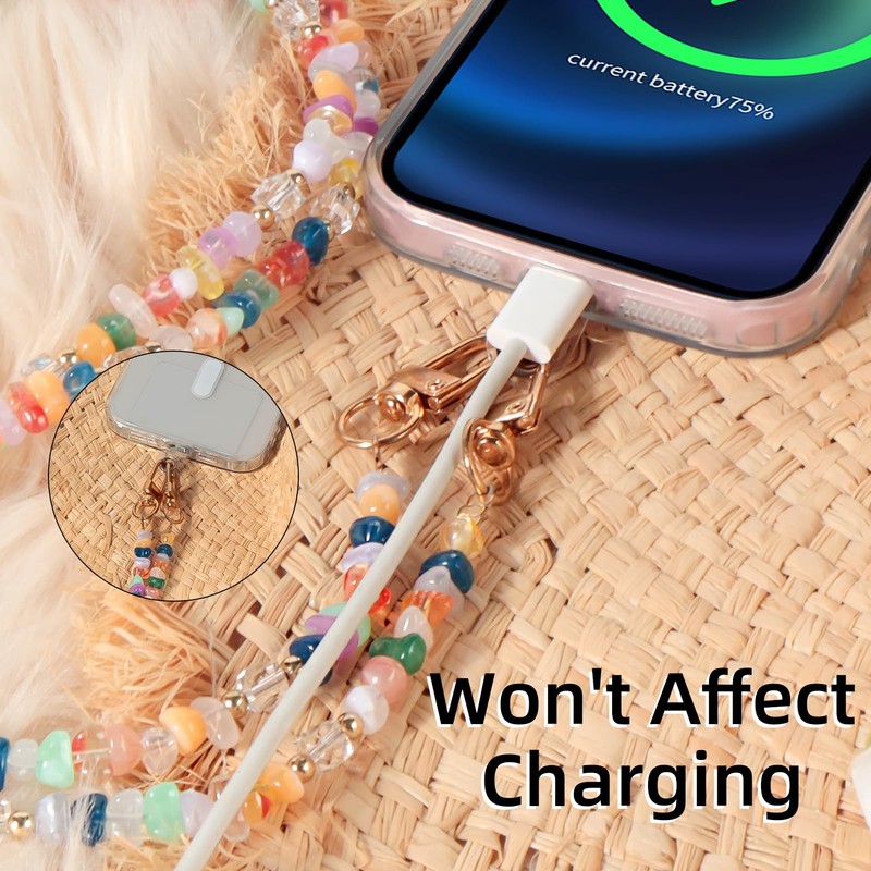 - Material: This mobile phone chain is made of irregular beads and high quality wire, which is durable and stylish when hung on the mobile phone