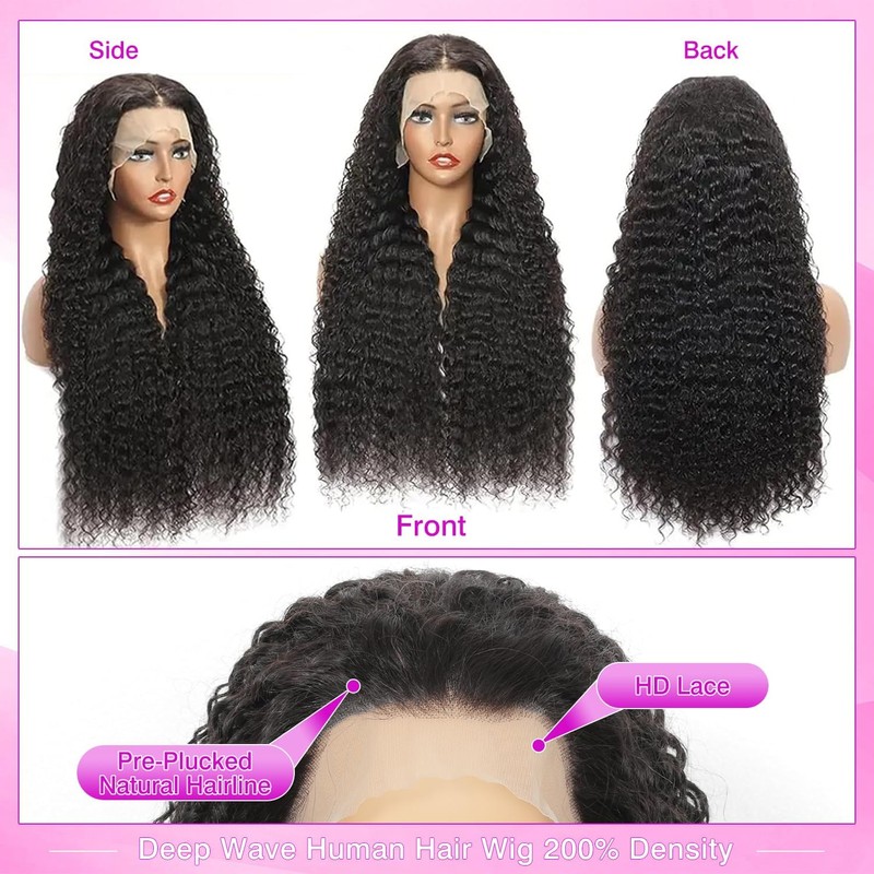 - 【32 inch deep wave frontal wig Quality】: 13x6 HD Lace Front Wigs Human Hair Pre Plucked, Deep Parting Space, Can Make Middle Part or Side Part, Make You Hair Style More Natural and Gorgeous.200% Density Deep Curly Lace Front Wigs Human Hair, Fuller and Glossy