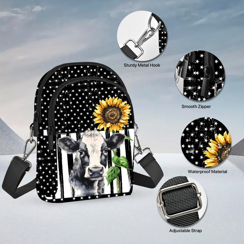 FyLybois Cow Sunflower Crossbody Bags for Women Cell Phone Purse Lightweight Adjustable Shoulder Handbags Wallet with Card Slots