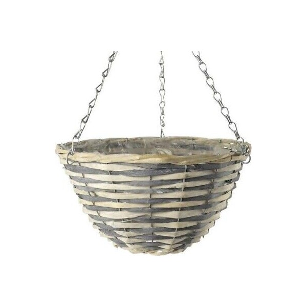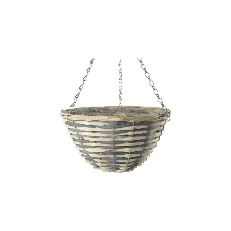Fyne-Finds 30cm, 12Inch Natural Grey Cream Wicker Hanging Deco Basket Lined Willow Planter
