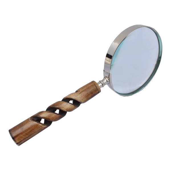 - The spiral design on the handle enhances the overall vintage look, adding a unique and decorative element to the magnifying glass.