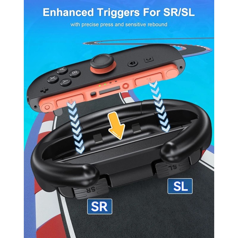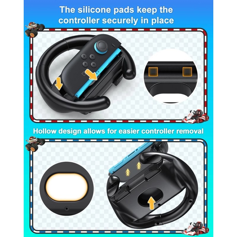 - Dual-Gen Compatibility for Joy con or for Joycon 2: The steering wheel grip designed for Nintendo Switch 2 controllers(for Joycon 2 controller) with perfect fit. Come with the detachable slide rail accessories enable seamless compatibility with Switch/Switch OLED controllers(for Joy con controller). Cross-generation console gamers don't need to repurchase racing wheel.(NOTE: Not Including Controller)