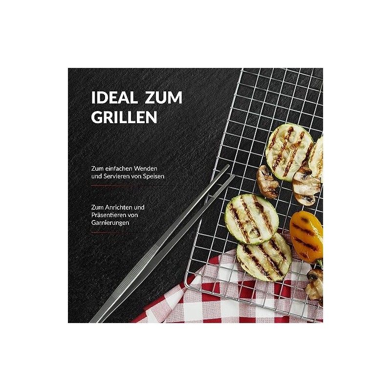 - Versatile: with our barbecue tweezers, food can not only be lifted and turned, but the tweezers also allow the precise placement of garnishes or the presentation of various food