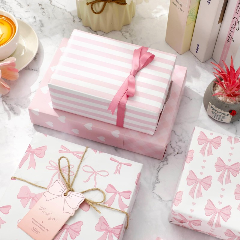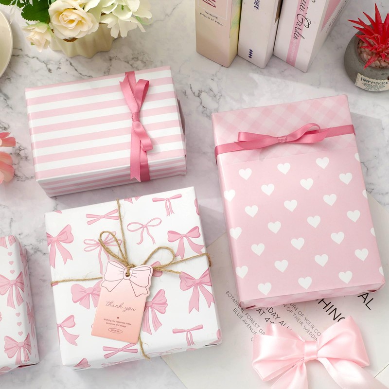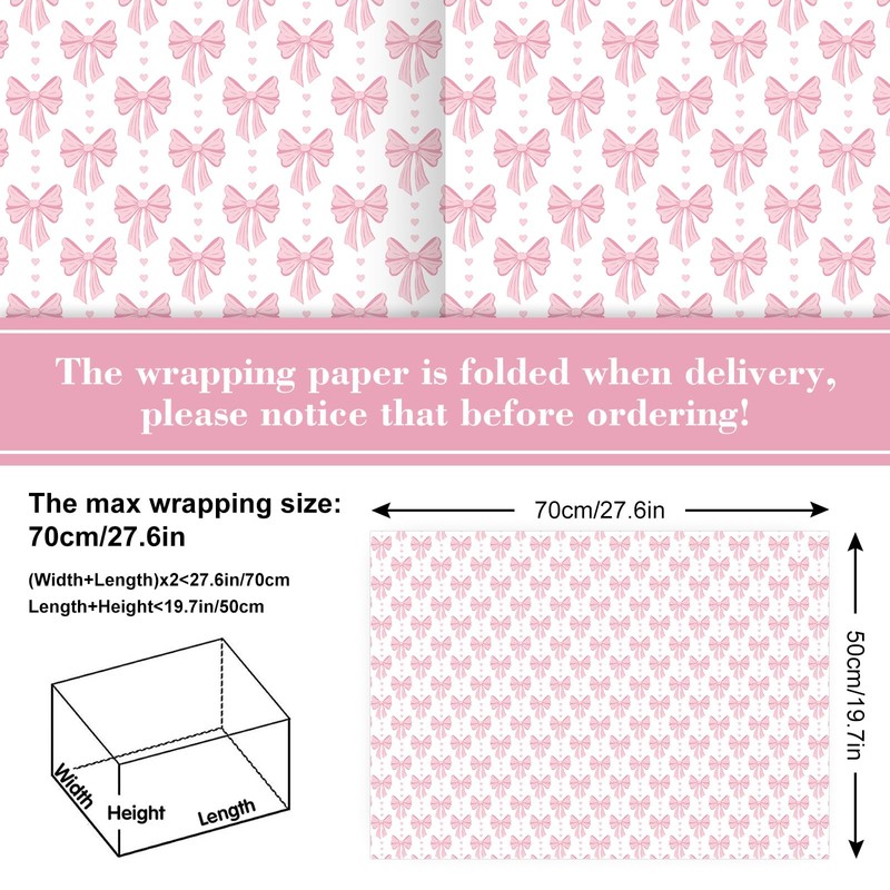 - CUTE & SWEET: Our wrapping paper are patterned with various of pink bowknots, hearts, stripes and check plaids, delicate and exquisite, wonderful supplies for gift wrapping and suitable for many occasions