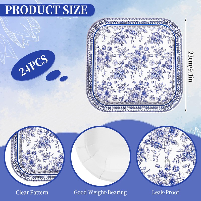 - THE PACKAGE INCLUDES: 24 Pcs square disposable plates with chinoiserie flower design, will offer sufficient quantity and delicate design for you