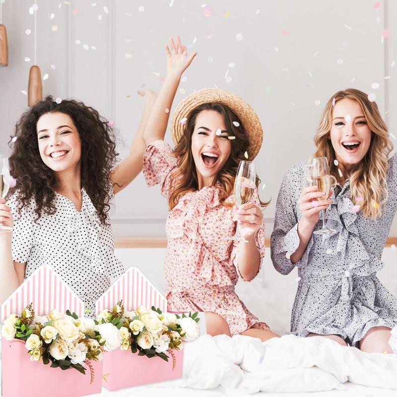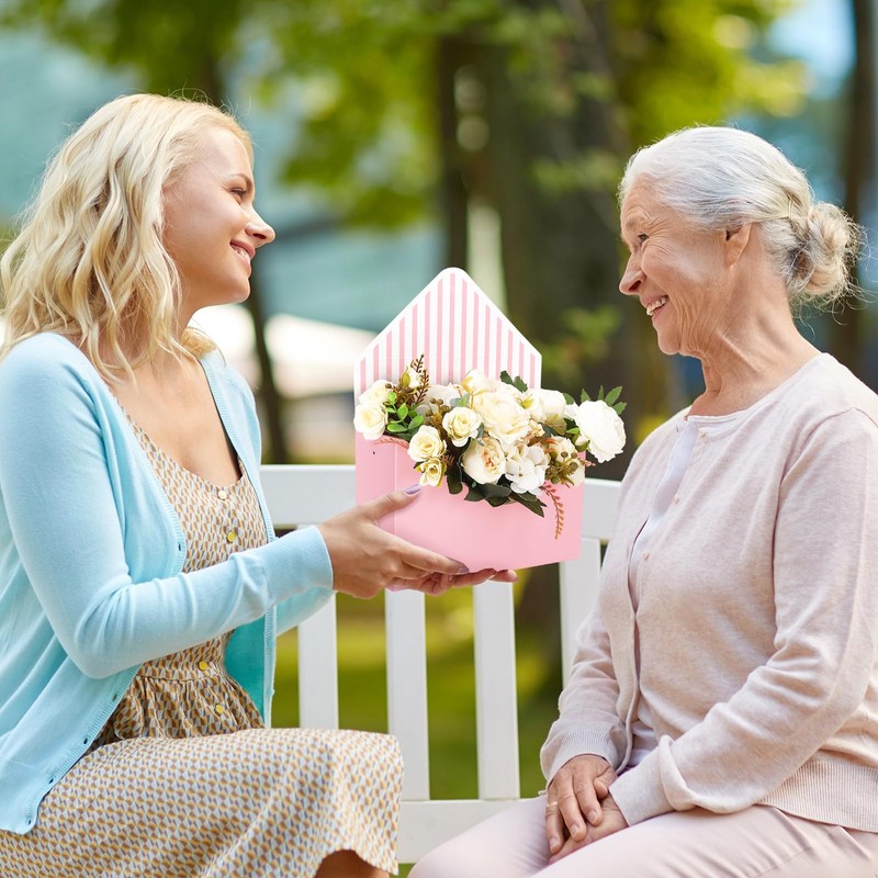 FYSUIMU 4Pcs Floral Envelope Box Empty Flower Stripe Paper Box Florist Bouquet Packaging Box for Mother's Day Wedding Birthday Party Arrangements, Pink