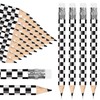 FYSUIMU 50Pcs Checkered Racing Car Half Gold Pencils with Eraser Racing Flag Pre Sharpened Short Writing Pencil for School Office Stationery Supplies, 4 Inch