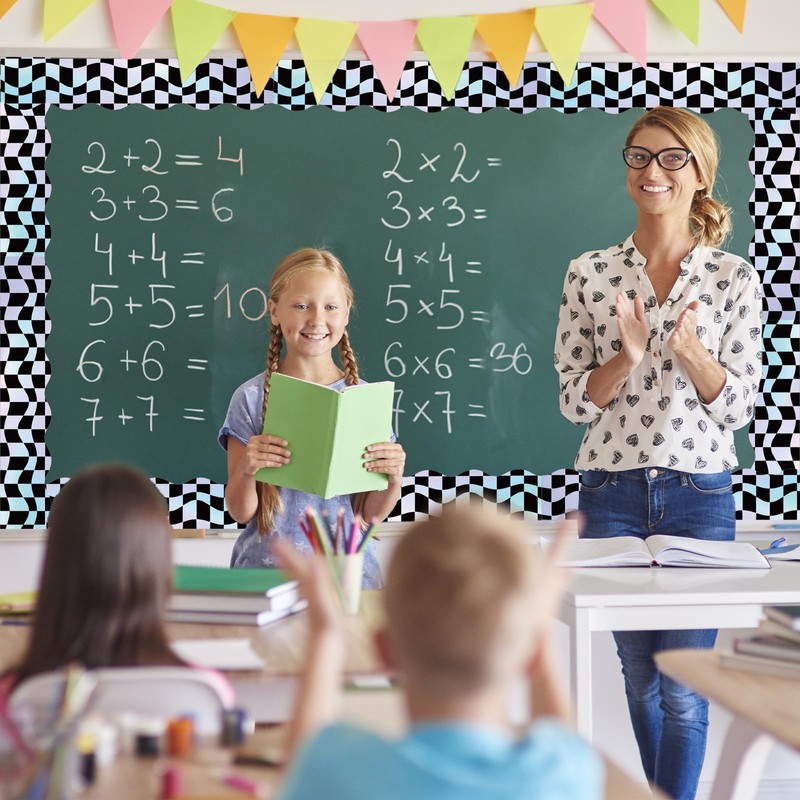 - CHECKERED DESIGN: The bulletin border features iridescent wavy checkerboard design, dazzling and trendy, great supplies for classroom bulletin board decorations