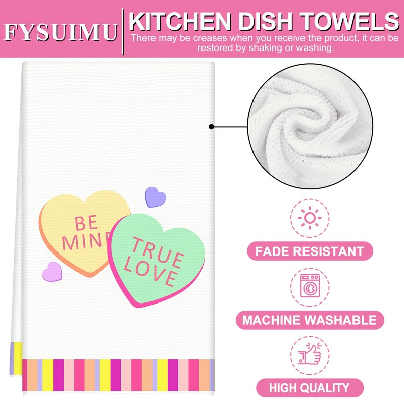 - DELICATE DESIGN: These kitchen towels are designed with colorful conversation hearts and stripes, eye-catching and pretty, great additions to your kitchen while being practical household supplies