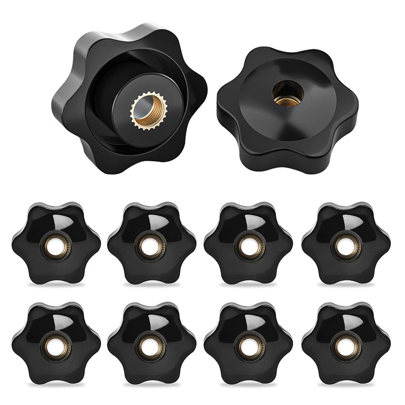 FYting Star Grip Nut M10, 10 Pieces Knurled Nut M10 Star Grip Nut Clamping Knob Black Plastic Grip Nuts Internal Thread Clamping Knob for Mechanical Equipment Industrial Equipment 38 mm