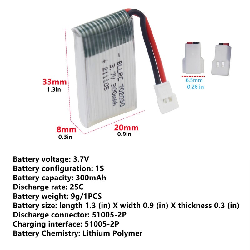 - Contenido del paquete: 5 baterías de litio de 3,7 V, 300 mAh, 25 C, con cargador 5 en 1