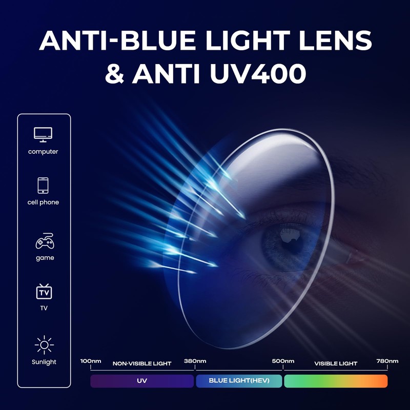 • BLUE LIGHT BLOCKING: Designed for optimal eye protection, these blue light blocking reading glasses feature coated lenses that effectively block over 95% of blue light and UV400. The multi-layer protective coating ensures anti-glare, anti-reflective, and scratch-resistant properties, reducing eye fatigue, headaches from glare, and blurred vision.