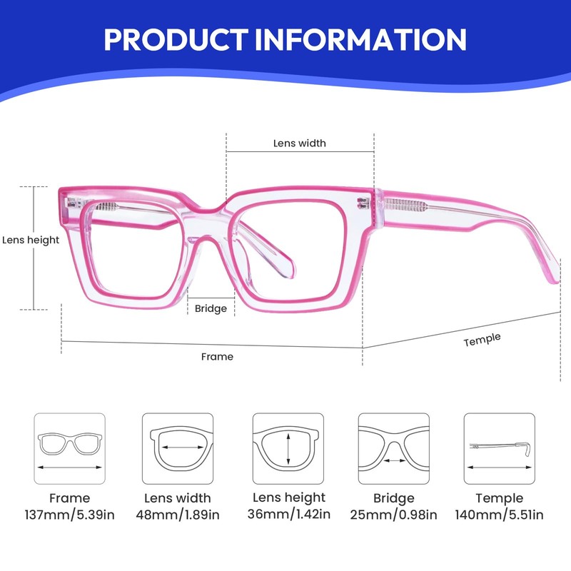 Square-shaped acetate glasses add some vintage flair to your look. Look at its eye-catching two colors: bright pink and fluorescent green, each of which is a unique highlight in your look
