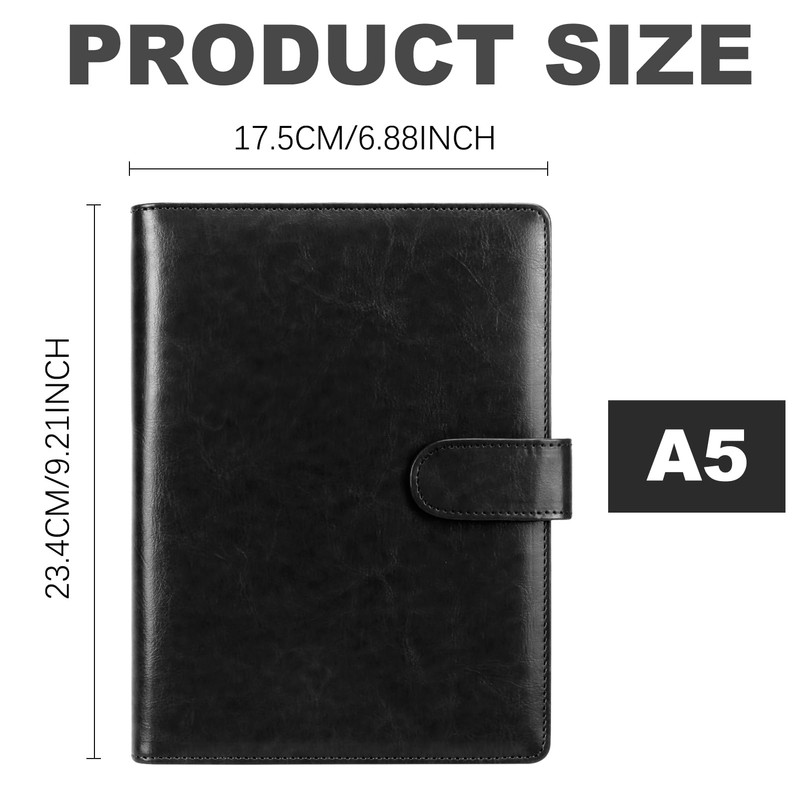 - đăConvenient StructureăThe A5 6-ring binder notebook is structured with a convenient magnetic snap closure, A5 refill paper included, perfect for a school notebook, office notebook, travel journal, budget noteboook, sketchbook, notebook, personal organizer, a planner, etc.