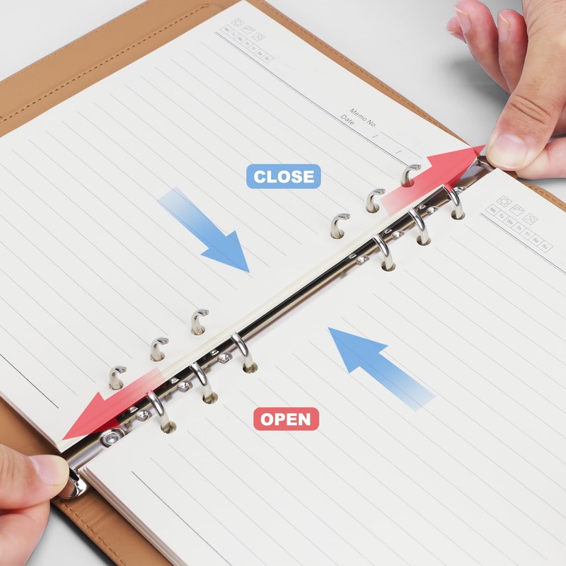 - đăSturdy 6-ringsăMade of sturdy stainless steel, can hold the paper firmly and prevent papers from falling off. With 2cm inner diameter, the binder can keep 80-100 sheets paper, meeting your daily needs.