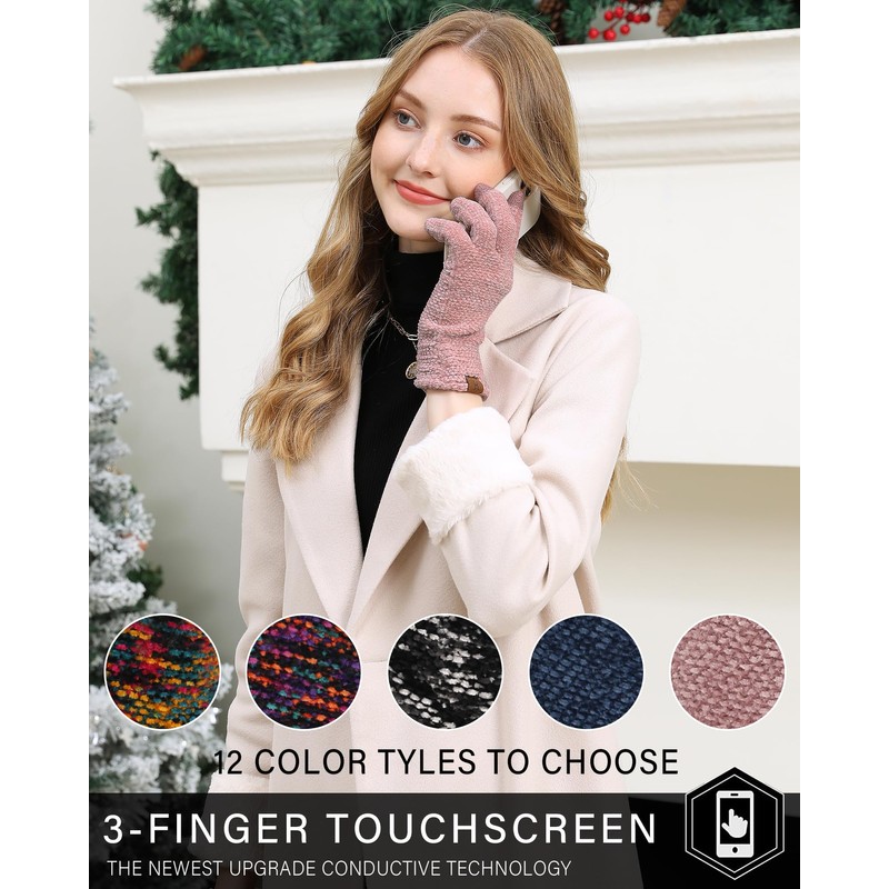 FZ FANTASTIC ZONE Womens Winter Touchscreen Gloves for Cold Weather, Chenille Warm Knit Gloves
