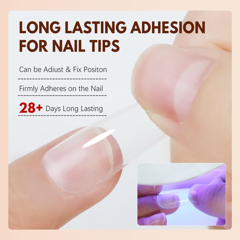 • 2 in 1 Nail Glue Gel for Acrylic Nails: 2 in 1 Nail glue & Base Gel,Create a strong crucial bond for perfect false nail extension in 1 layer without additional base coat. Super strong and long lasting,It is also a long-lasting Base Coat.