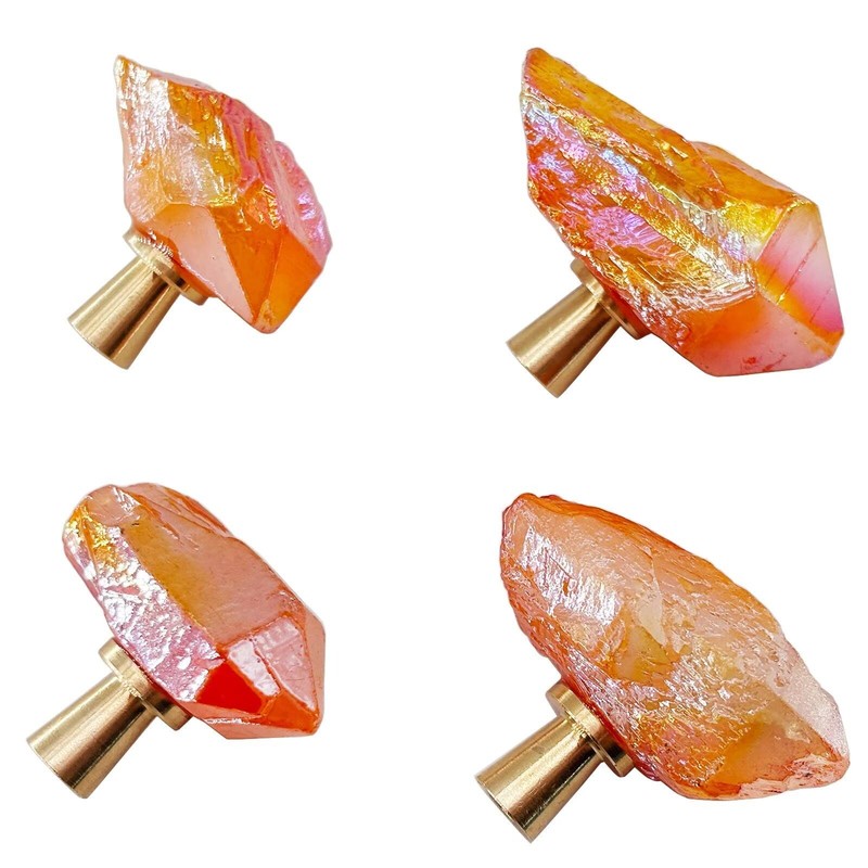 FZBHRO Natural Crystal Stone Cabinet Knobs Decorative Drawer Knobs Handles Gemstone Cupboard Pulls for Home Office Decor Coated Orange 4 Pack