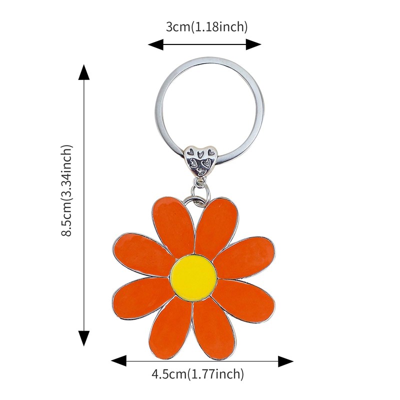 Fzcyuoo Cute Daisy Keychain, Enamel Bag Charm, Floral Charm for Purse Keys Metal Keyring Gift, Flower Pendant Key Holders, Bag Accessories, Travel Deco for Women Girls Flower Lovers (Orange)
