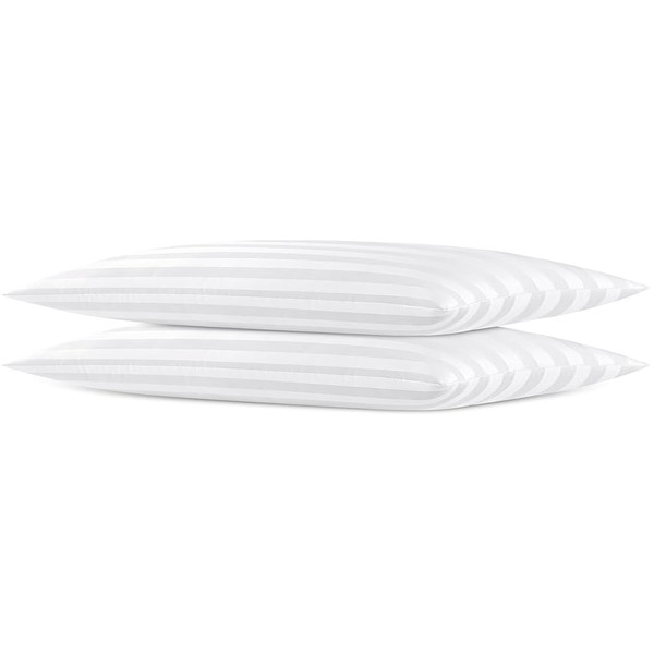 - SOFT FLAT COMFY BED PILLOW:Our bed pillows covers are made of high-quality microfiber fabric material,exquisite striped design filled with a soft 3D down alternative,600 GSM filling allows the pillow to provide soft medium support and plenty of comfort for your head, neck and shoulders.