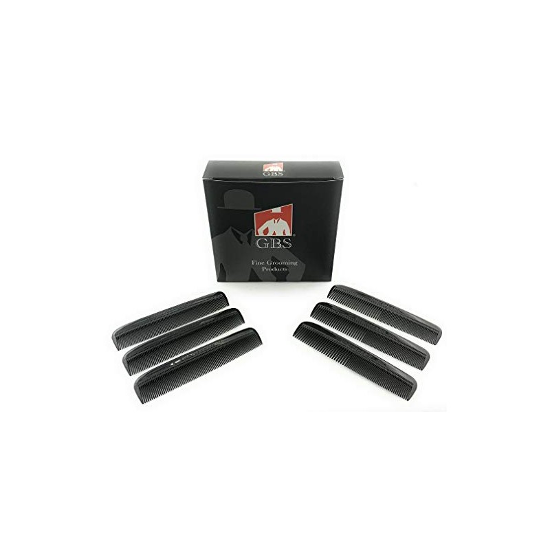 G.B.S 6pcs Black 5" Course Fine and All Fine Pocket Hair Comb Beard & Mustache Combs for Men's Convenient Durable Fine Tooth Professional Barber Choice Pack of 1